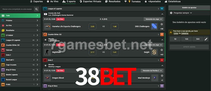 O 38bet oferece uma grande seleção de opções de apostas em e-sports com probabilidades competitivas